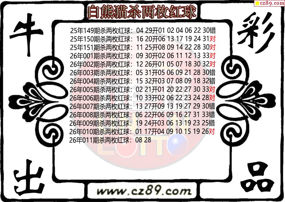 双色球011期 白熊猫杀两枚红球图迷 10中5-【福彩3d】3d开奖结果_3d走势图_3d试机号_3d字谜_3d开机号-3D福彩